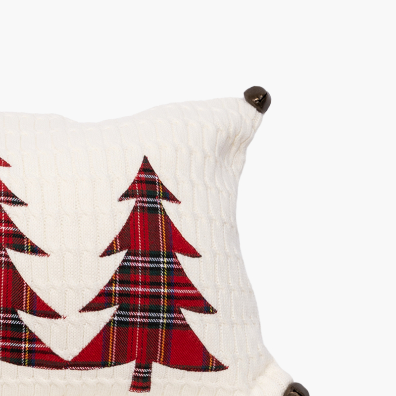 JC Beyaz Örgü, Çam Ağaçlı Yastık Kılıf 60cm