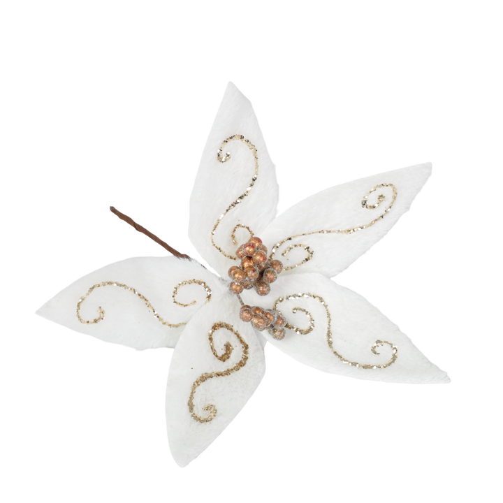 Şık ve zarif bir detay arayanlar için JC Beyaz Simli Çiçek Ağaç Süsü, yılbaşı ağacınıza ve dekorasyonunuza göz alıcı bir ışıltı katıyor. Yumuşak beyaz yaprakları, altın sim işlemeleri ve ortasında yer alan parlak boncuk detaylarıyla lüks bir görünüm sunar. Ağacın dallarına, çelenklere veya masa süslemelerine kolayca eklenerek dekorunuzu daha ihtişamlı hale getirir.