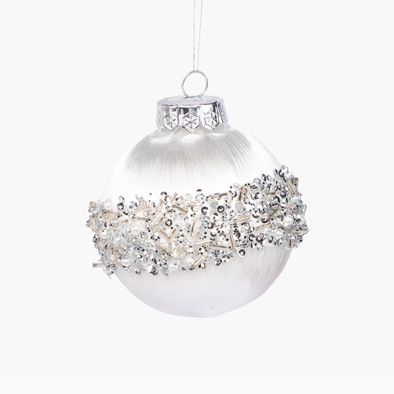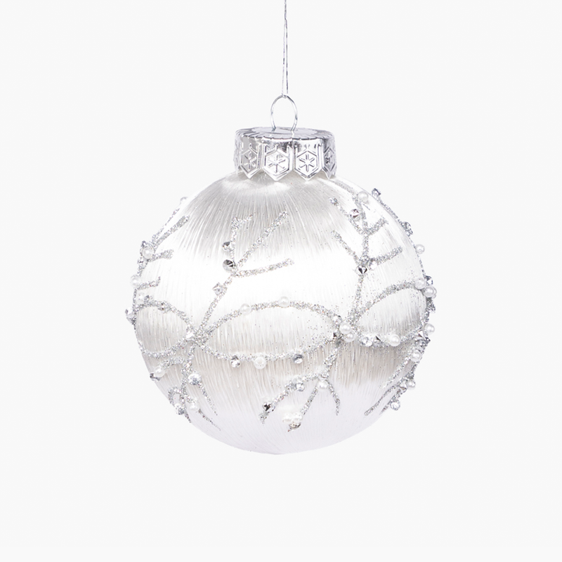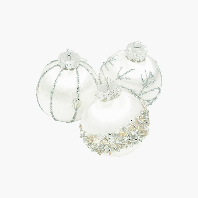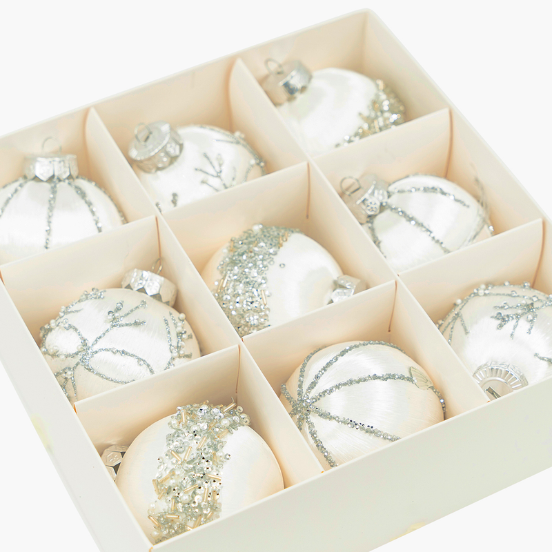 JC Beyaz, Simli Premium Ağaç Süsü Seti 8cm (9 Parça)