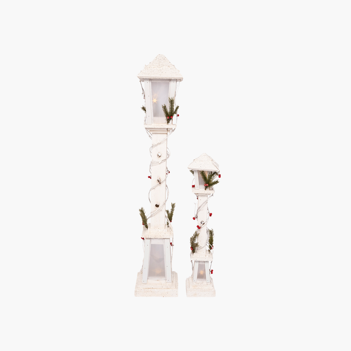 JC Yılbaşı Koleksiyonu’nun en zarif parçalarından biri olan beyaz ahşap sokak lambası dekoru, 80 cm’lik boyuyla mekânlarınıza şıklık ve aydınlık bir dokunuş katar. Kar beyazı rengi, kışın saf ve huzurlu atmosferini yansıtırken, kendinden LED ışıkları sıcak bir parıltı yayarak bulunduğu ortama masalsı bir hava kazandırır. Özellikle giriş alanları, vitrinler ya da salon köşelerinde kullanıldığında dekorasyona nostaljik bir ihtişam ekler.
