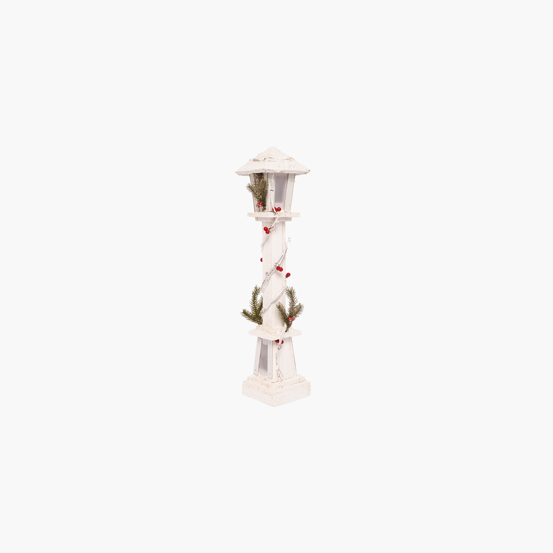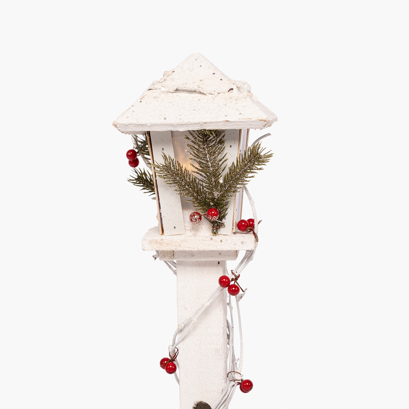 JC Beyaz Sokak Lambası Dekor Ahşap 80cm (Kendinden Led'li)