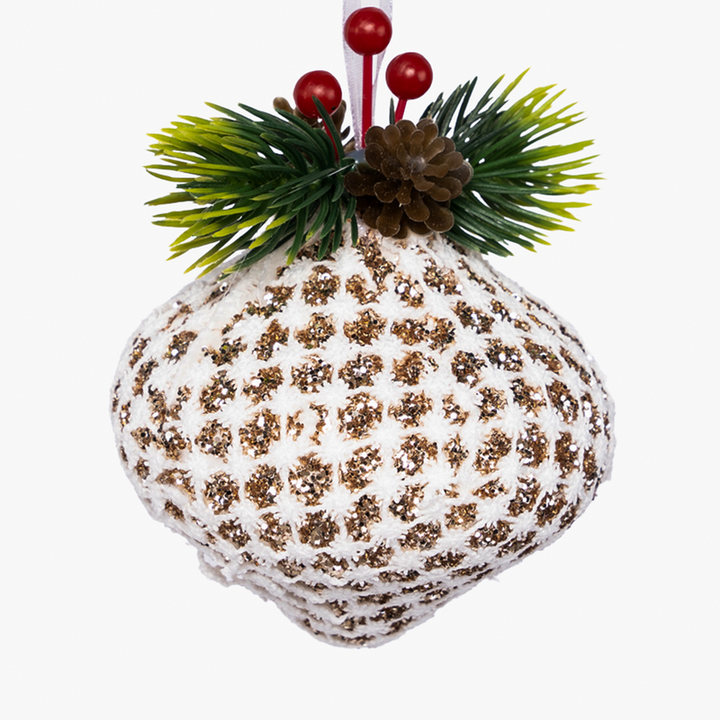Malzeme: Plastik gövde, simli kaplama, yapay yeşil, kırmızı meyve ve mini kozalak detayı