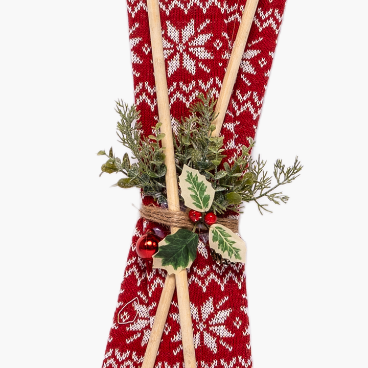 Kış dekorasyonuna doğal bir hava katmak için tasarlanan JC Yılbaşı Koleksiyonu Kendinden Dekorlu 2’li Kayak Seti, rustik tarzıyla öne çıkar. Ahşap tonlarıyla uyumlu kırmızı desenli detaylar, üzerinde yer alan yaprak ve kozalak süslemeleriyle birleşerek sıcak ve samimi bir atmosfer oluşturur. Hem duvara dayalı hem de asmalı kullanım için uygundur ve yılbaşı köşelerine zarif bir dokunuş katar.