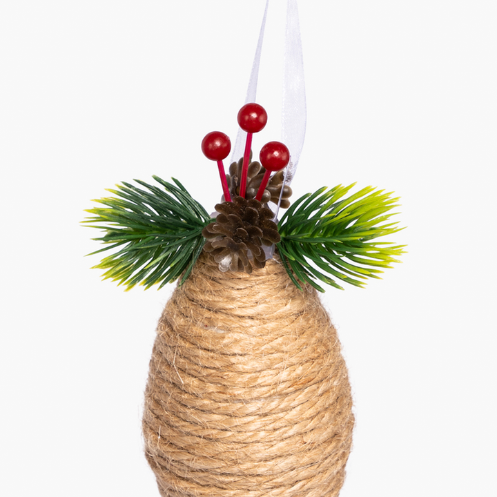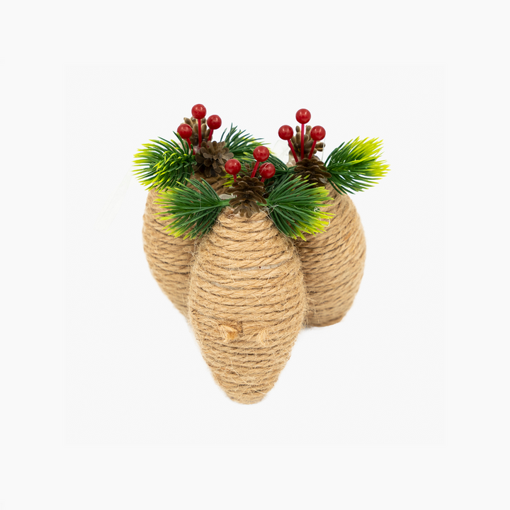 Malzeme: Plastik gövde, jüt ip kaplama, örgü detay, yapay yeşil, kırmızı meyve ve mini kozalak