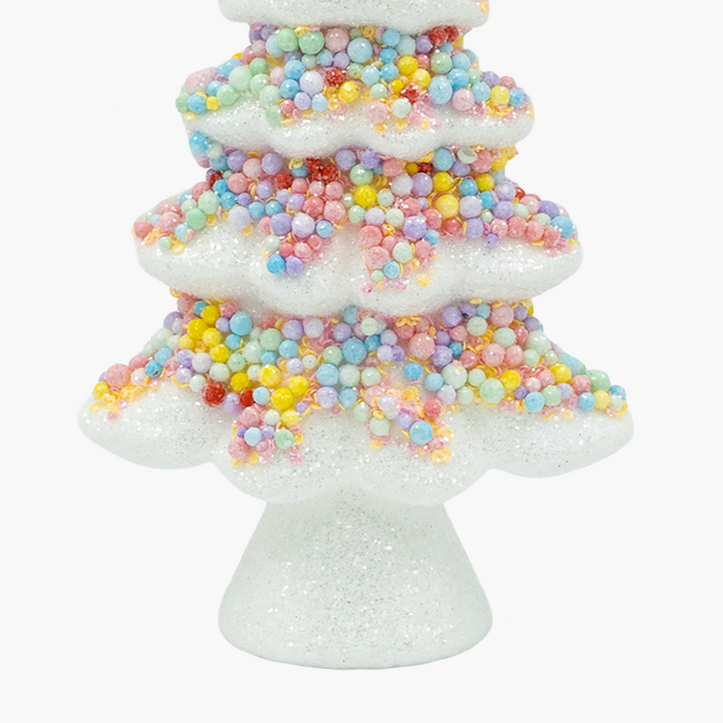 Neşeli ve renkli tasarımıyla öne çıkan JC Happy Sugar koleksiyonuna ait beyaz şeker ağaç dekor, yılbaşı süslemelerinize masalsı bir hava katar. Beyaz gövdesi üzerinde rengarenk detaylarla süslenen bu özel dekor, ister masa üzerinde ister raflarda kullanılarak evinize sıcak bir atmosfer kazandırır. Küçük boyutu sayesinde her köşede sevimli bir vurgu oluşturur.