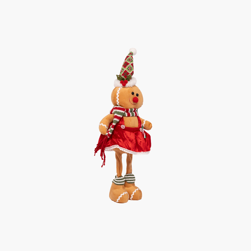Happy Sugar koleksiyonunun neşeli karakterlerinden etekli peluş cookie, sevimliliğiyle yılbaşı dekorasyonunuza şeker tadında bir hava katar. Kırmızı eteği, çizgili atkısı ve eğlenceli şapkasıyla öne çıkan bu peluş dekor, hem çocukların hem de yetişkinlerin beğenisini kazanır. 45 cm ve 55 cm olmak üzere iki farklı boy seçeneğiyle ev, vitrin veya etkinlik alanlarında sıcak ve keyifli bir atmosfer oluşturur.