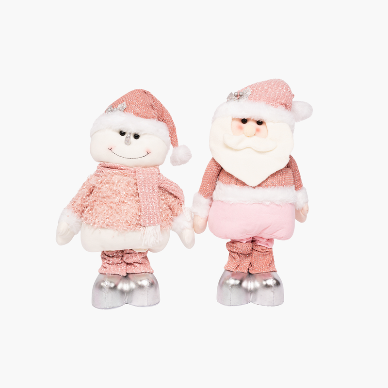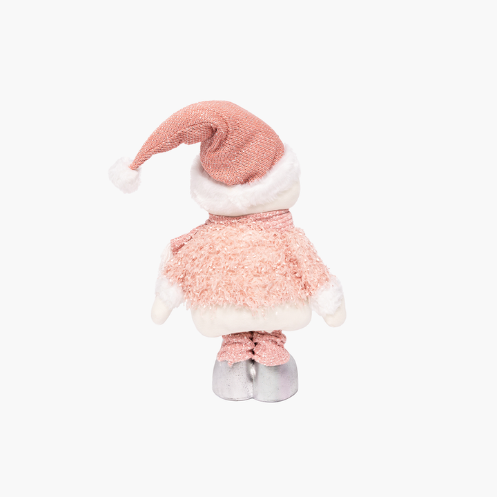 Happy Sugar koleksiyonunun kadın figürü, pudra pembe tonları ve yumuşacık peluş dokusuyla evinize sıcacık bir atmosfer katar. Oturan formuyla raflarda, sehpalarda veya şömine üstünde sergilenmeye uygun olan bu dekoratif figür, zarif atkısı ve parıltılı şapkasıyla modern bir yılbaşı dekoruna şıklık katar. 70 cm boyutuyla hem tek başına hem de farklı dekoratif aksesuarlarla kombinlenerek dikkat çekici bir görünüm sağlar.