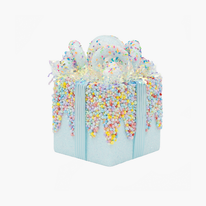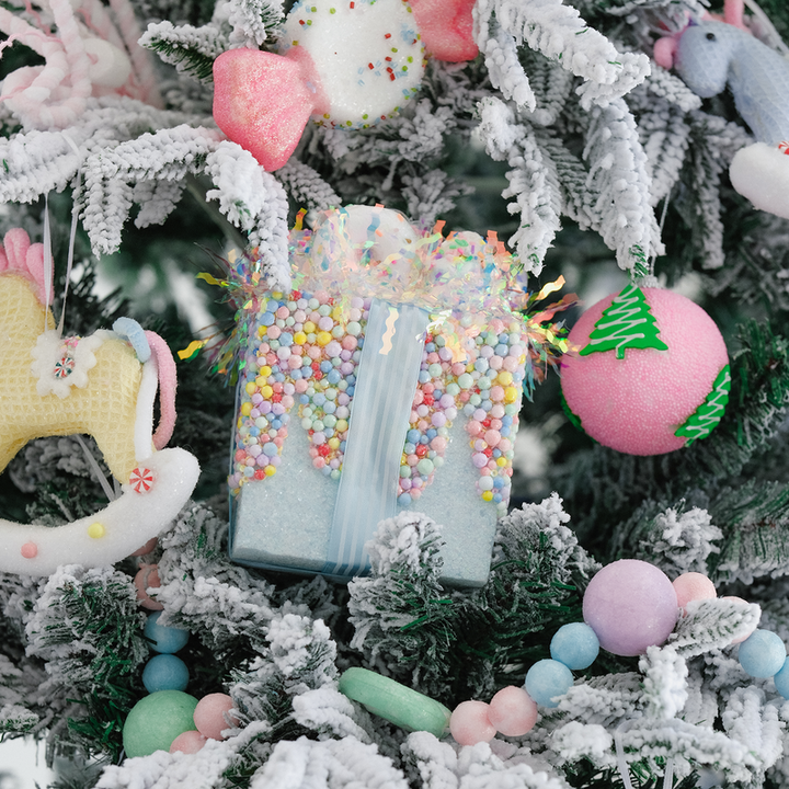 Şekerli detaylarıyla masalsı bir görünüm sunan JC Happy Sugar koleksiyonuna ait mavi hediye kutu dekor, yılbaşı süslemelerinize sevimli bir dokunuş katar. Pastel mavi tonları ve renkli detaylarıyla öne çıkan bu kutu, özellikle masa üstlerinde veya ağacın alt kısmında kullanıldığında dekorasyonunuzu tamamlayan şık bir obje olur. Küçük boyutuyla kompakt alanlarda da rahatlıkla değerlendirilebilir.