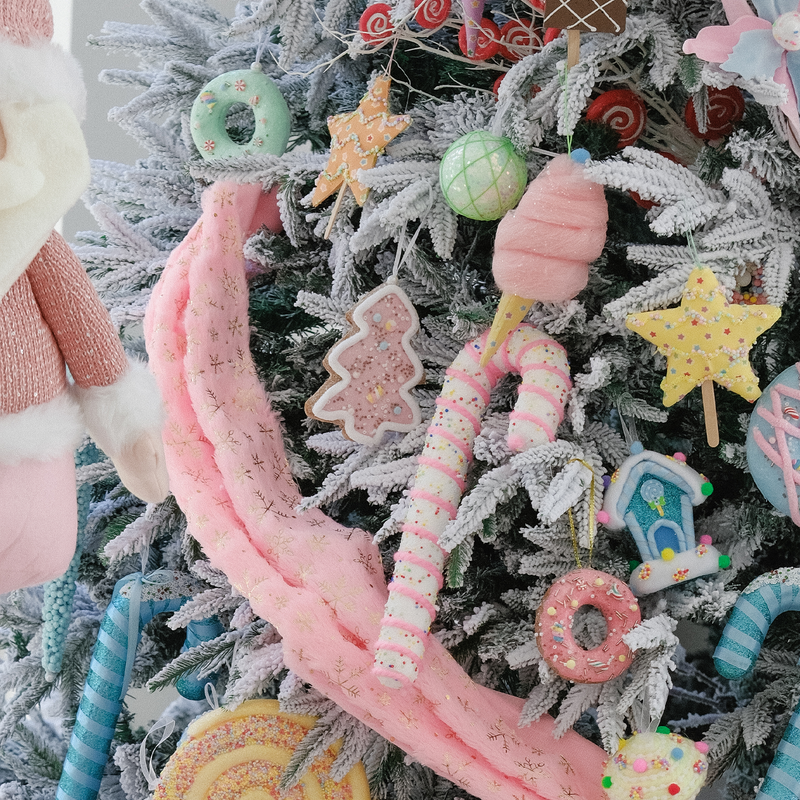 JC Happy Sugar koleksiyonundaki donut, yıldız ve şeker garland süsleriyle bir araya getirildiğinde bütünlüklü ve neşeli bir konsept yaratır. Özellikle pastel tonlu süslerle kombinleyerek yılbaşı ağacınızda modern ve eğlenceli bir görünüm elde edebilirsiniz.