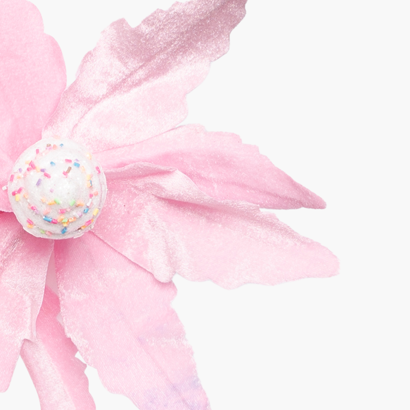 Happy Sugar koleksiyonunun göz alıcı detaylarını taşıyan pembe çiçek ağaç süsü, yılbaşı ağacınıza romantik ve masalsı bir hava katar. Yumuşak pembe ton üzerine serpiştirilmiş renkli sim parçaları, tatlı bir şekerleme etkisi yaratırken, ortadaki beyaz detay süse neşeli bir hareketlilik kazandırır. Geniş yaprak formu sayesinde ağacınızda güçlü bir vurgu noktası oluşturur.