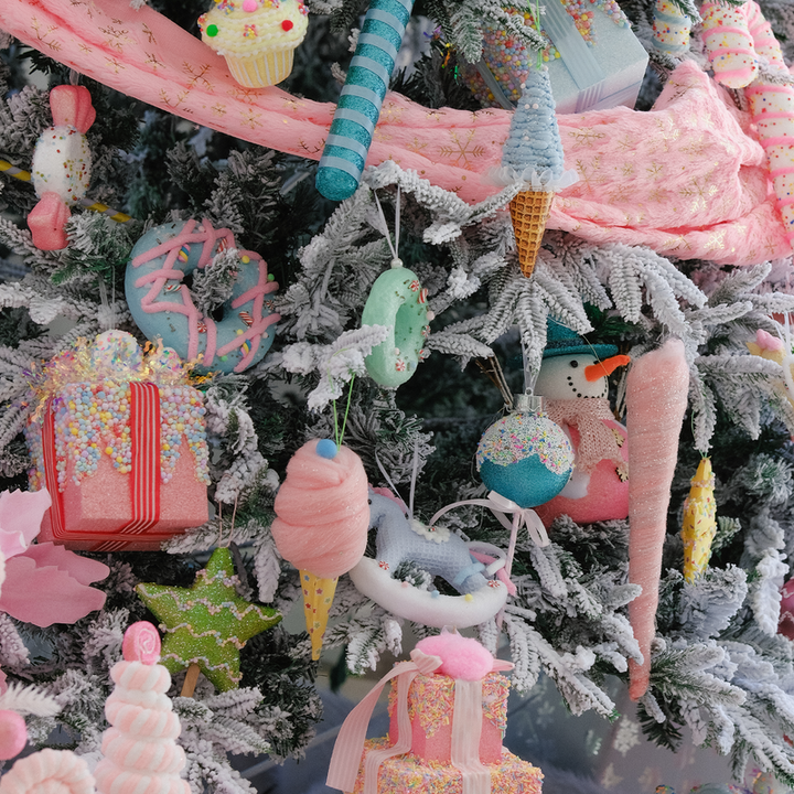 JC Happy Sugar koleksiyonundaki mavi ve pembe farklı boyutlardaki kutularla kombinleyerek şık bir bütünlük oluşturabilirsiniz. Candy stick ve donut süslerle tamamlandığında masalsı bir yılbaşı atmosferi yaratır.