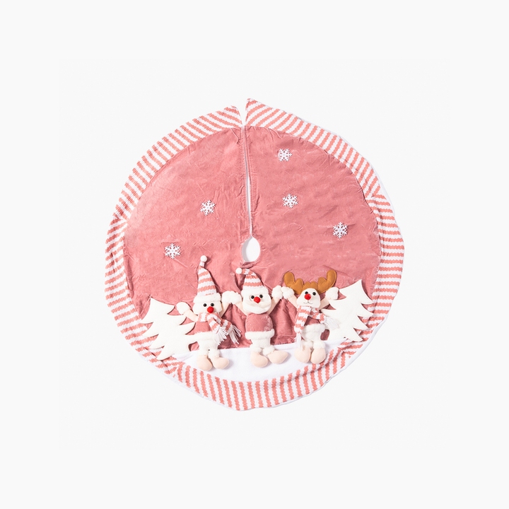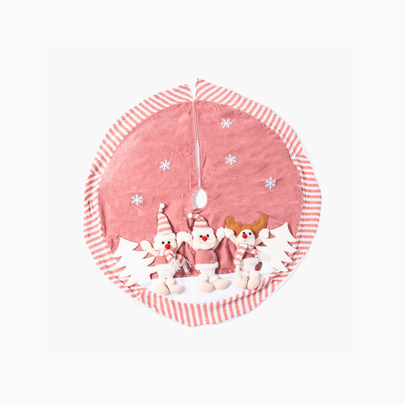 Happy Sugar koleksiyonunun en tatlı parçalarından biri olan pembe kadifeli ağaç altı örtüsü, sevimli figürleriyle yılbaşı dekorasyonuna neşeli bir dokunuş katıyor. Yumuşacık kadife kumaşı, üzerindeki mini Noel Baba, kardan adam ve geyik detaylarıyla birleşerek sıcak ve masalsı bir atmosfer yaratır. 120 cm genişliğiyle hem küçük hem de büyük çam ağaçlarının altını estetik bir şekilde kapatarak dekorasyonunuzu tamamlar. Üzerindeki kar tanesi işlemeleri ve çizgili bordür detaylarıyla oldukça şık ve göz alıcıdır.