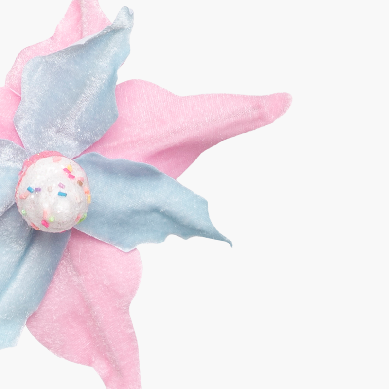 Happy Sugar koleksiyonunun en renkli parçalarından biri olan pembe ve mavi çiçek ağaç süsü, pastel tonlarıyla ağacınıza tatlı ve eğlenceli bir dokunuş katar. İki rengin uyumuyla öne çıkan bu tasarım, rengârenk serpiştirilmiş sim detayları ve ortadaki yuvarlak süsüyle dikkat çeker. Şekerleme ilhamlı görünümü sayesinde hem eğlenceli hem de sevimli bir atmosfer yaratır.