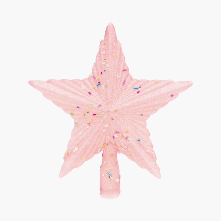 Happy Sugar koleksiyonunun ışıltılı tasarımlarından biri olan pembe yıldız ağaç başlığı, pastel tonların neşesini yılbaşı ağacınıza taşıyor. Parlak sim detayları ve üzerindeki renkli serpiştirilmiş süslemeleriyle tatlı bir görünüme sahip olan bu başlık, ağacınızın zirvesine şeker tadında bir final dokunuşu yapar. Özellikle çocukların ilgisini çekecek eğlenceli havasıyla dekorasyonunuza masalsı bir renk katar.