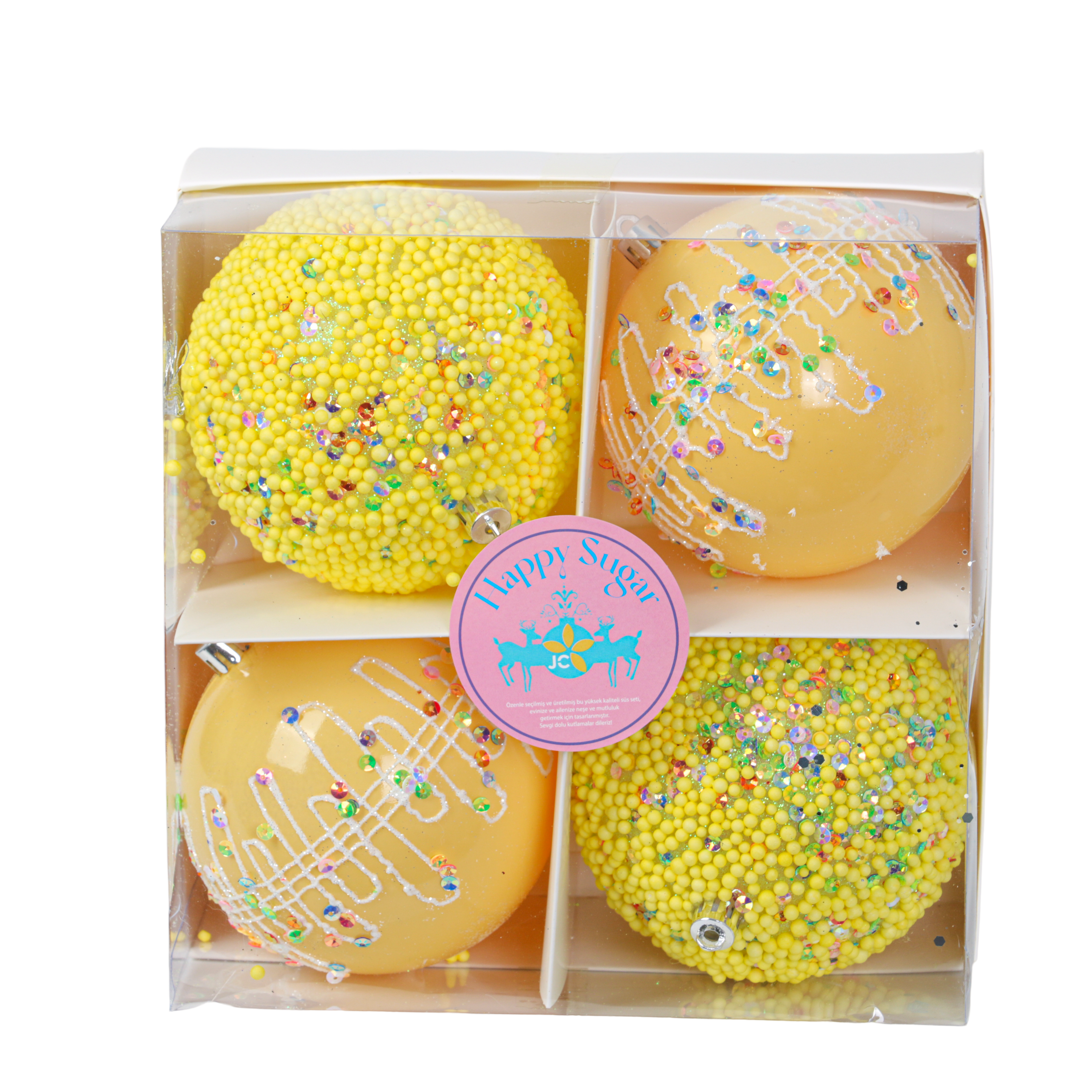 JC HAPPY SUGAR Sarı Ağaç Süsü Seti 10cm (4 Parça)