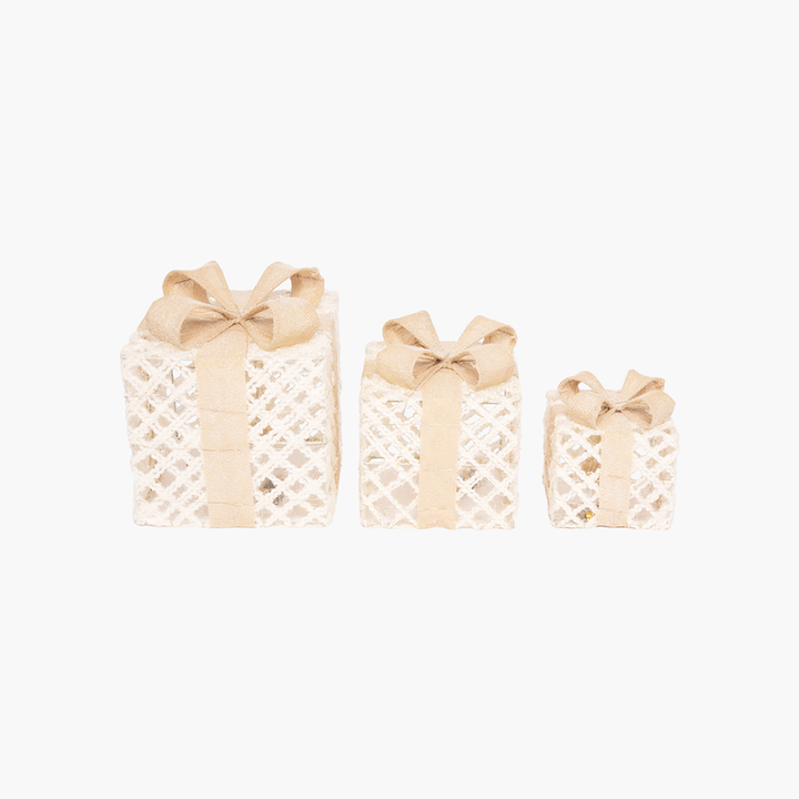 JC Işıklı Altın Şeritli Hediye Paket Seti 15+20+25cm (Kendinden Led'li)
