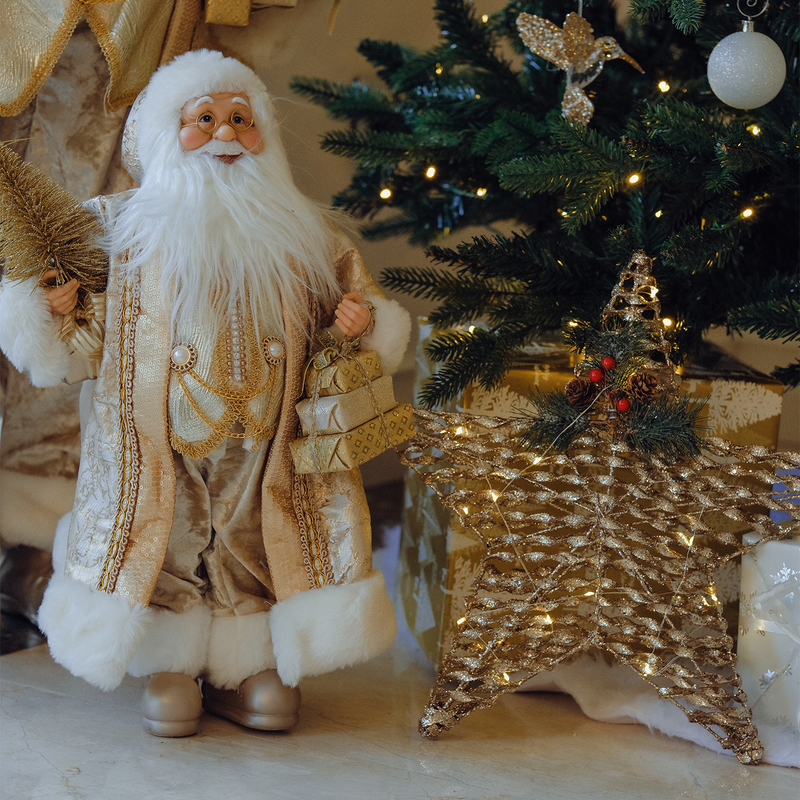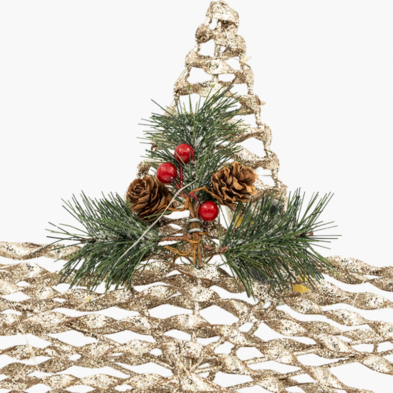 JC Yılbaşı Koleksiyonu’nun en zarif parçalarından biri olan ışıklı yıldız dekor, 40 cm’lik ölçüsüyle sıcak ve büyüleyici bir atmosfer yaratır. Doğal dokulu tasarımıyla öne çıkan bu yıldız, üzerindeki yeşil yaprak ve kırmızı detaylarla yılbaşı ruhunu en sade ve şık haliyle yansıtır. Kendinden LED ışıkları sayesinde ev, ofis veya vitrinlerde göz alıcı bir ışık kaynağı olur ve kış gecelerine masalsı bir parıltı katar.