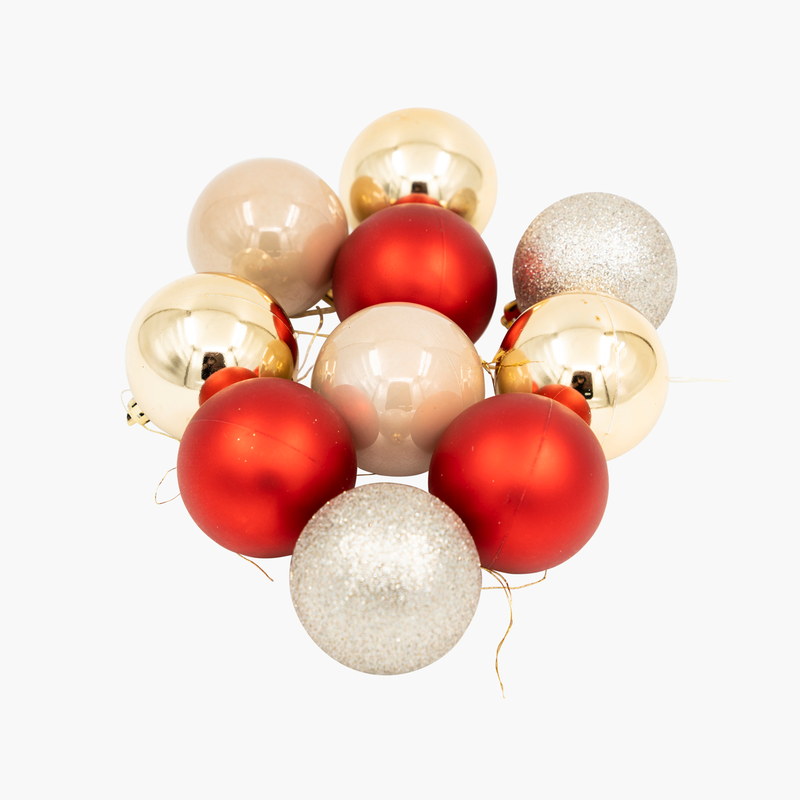 Ürün İsmi: JC Kırmızı, Altın Premium Ağaç Süsü Seti 6cm (10 Parça)