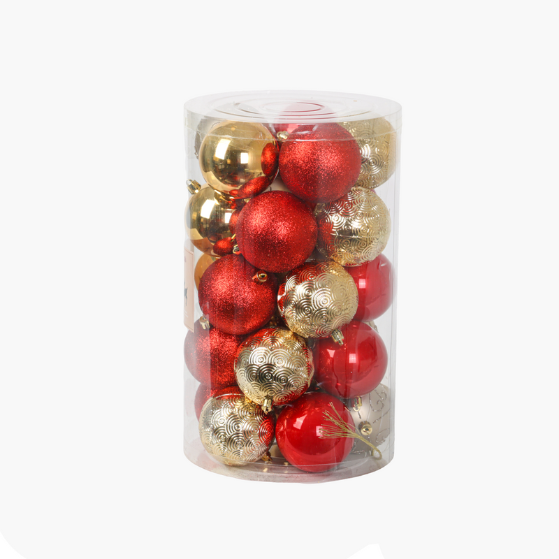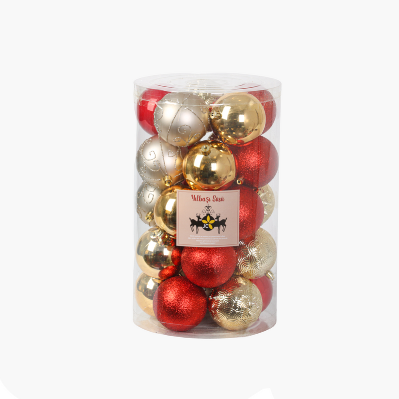 Ürün İsmi: JC Kırmızı, Altın Premium Ağaç Süsü Seti 8cm (24 Parça)