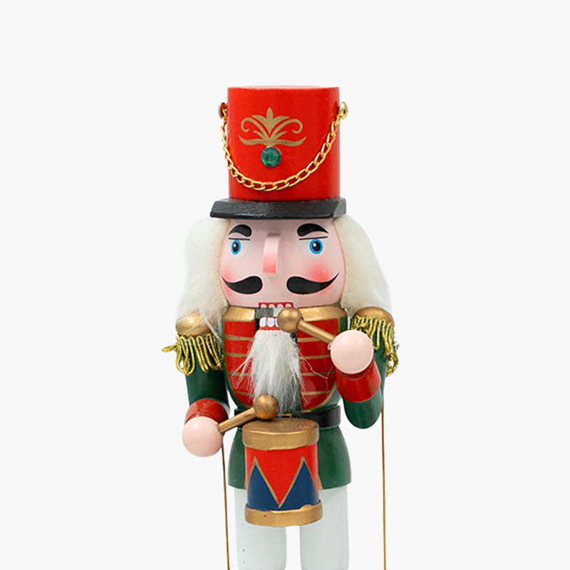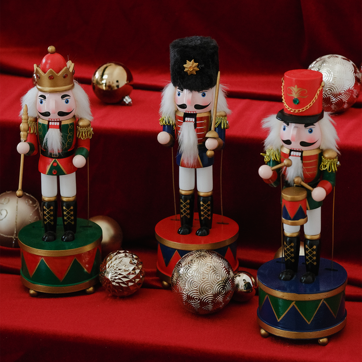 El işçiliğiyle hazırlanmış JC Kurmalı Müzikli Nutcracker, klasik tasarımıyla yılbaşı dekorasyonlarına nostaljik bir hava katar. Kurmalı mekanizması sayesinde melodik bir müzik eşliğinde çalışır ve görsel şıklığını sesle bütünleştirir. Yeşil ve lacivert tonlarıyla öne çıkan detaylı boyamaları, alt kısmındaki zarif davul stantıyla birleşerek dekoratif bir bütünlük sağlar. Ev, vitrin ya da ofis süslemelerinde dikkat çekici bir figür olarak tercih edilebilir.