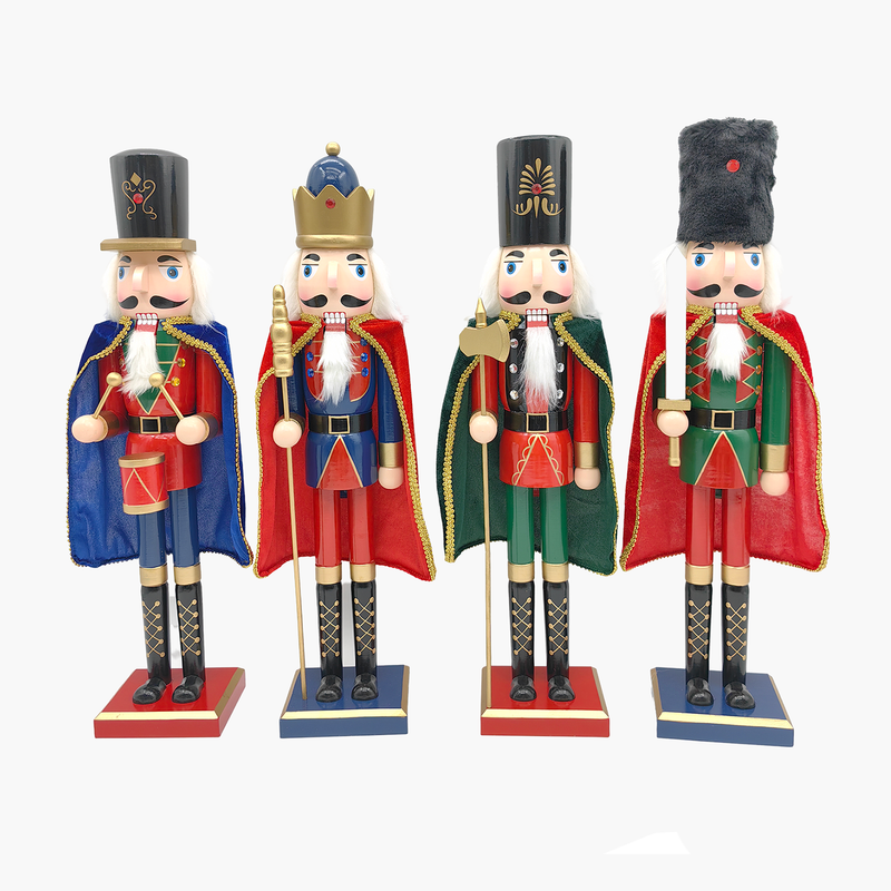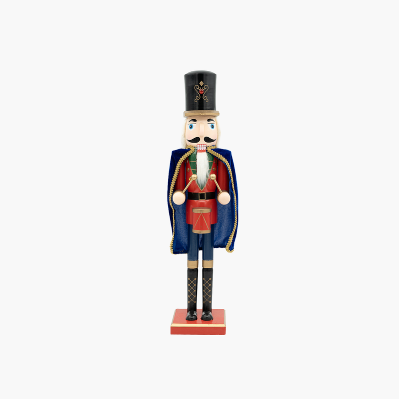Klasik kırmızı kostümü ve mavi peleriniyle öne çıkan JC Mavi Pelerinli Nutcracker, ihtişamlı duruşu ve davul detayıyla yılbaşı dekorasyonlarınıza otantik bir hava katar. El işçiliğiyle hazırlanan detayları, nostaljik masal havasını evinize taşıyarak dekorunuza şıklık ve karakter katar.