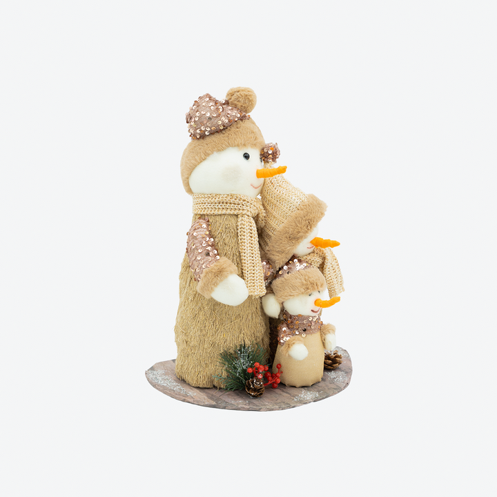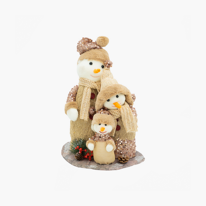 Doğal tonların sıcaklığını pembe parıltılarla buluşturan JC Natural Kardanadam Aile Dekor, yılbaşı dekorasyonuna samimi ve zarif bir hava katıyor. Sevimli kardanadam figürleri, aileyi simgeleyen tasarımıyla hem ev hem de vitrin süslemelerinde öne çıkar. Payet detaylı şapkaları ve aksesuarları, ışık altında parlayarak göz alıcı bir görünüm sunar. Özellikle doğal, bohem ve sıcak dekor stillerini sevenler için mükemmel bir tamamlayıcıdır.