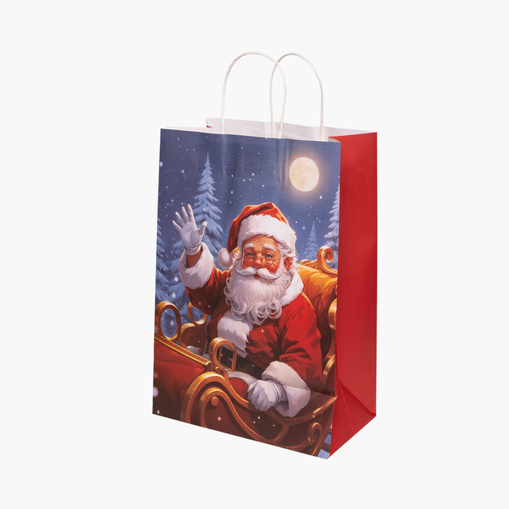 Küçük boyutuyla dikkat çeken JC Noel Baba Karton Çanta, sevimli hediyelerinizi yılbaşı ruhuna uygun şekilde sunmak için tasarlandı. Canlı Noel Baba desenleri ve kırmızı yan yüzeyleriyle eğlenceli bir hava katar. Dayanıklı yapısı sayesinde küçük ama özel hediyelerinizi güvenle taşır ve şık bir sunum oluşturur.
