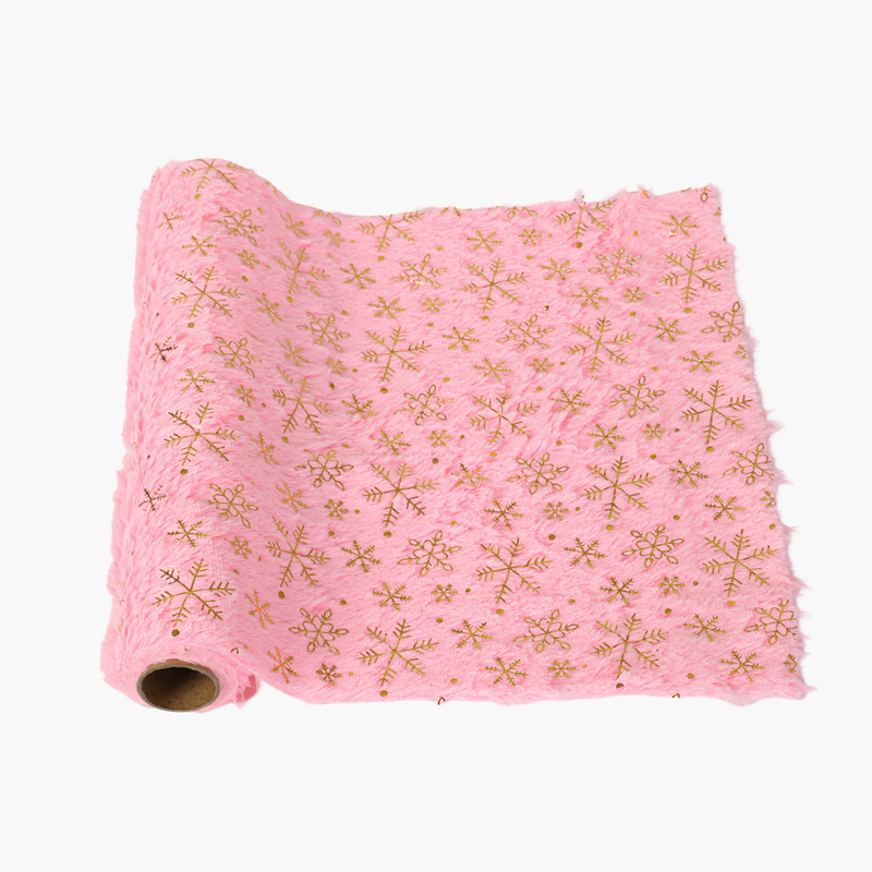 Yumuşacık dokusuyla öne çıkan JC Peluş Pembe Dekor Rulo, canlı pembe tonu ve üzerine işlenmiş altın kar tanesi desenleriyle neşeli ve sıcak bir atmosfer yaratır. Özellikle kış ve yılbaşı süslemelerinde romantik ve eğlenceli bir dokunuş katmak için idealdir. Masa, vitrin ve hediye paketlerinde kullanıldığında zarif ve dikkat çekici bir görünüm sağlar.