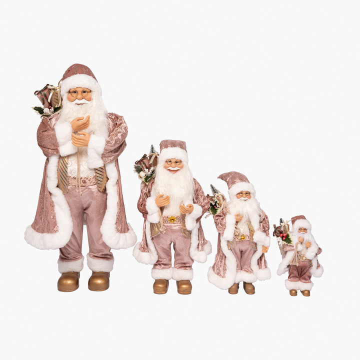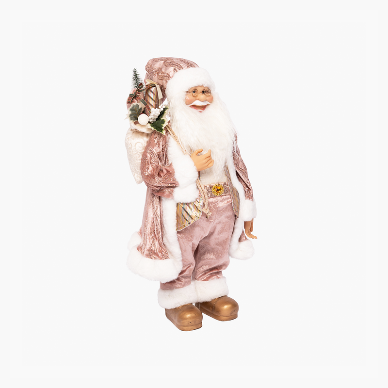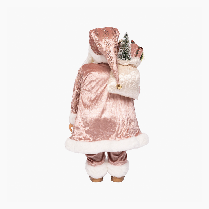 JC Pembe Noel Baba 60cm, yılbaşı dekorasyonlarında pastel şıklığın öne çıkmasını sağlayan zarif bir parçadır. Pembe kadife kumaştan tasarlanan detaylı kıyafeti, beyaz kürk süslemeleri ve özenle hazırlanmış aksesuarlarıyla lüks ve sofistike bir atmosfer yaratır. Büyük boyutu sayesinde hem evlerde hem de vitrin ve etkinlik alanlarında göz alıcı bir odak noktası oluşturur.