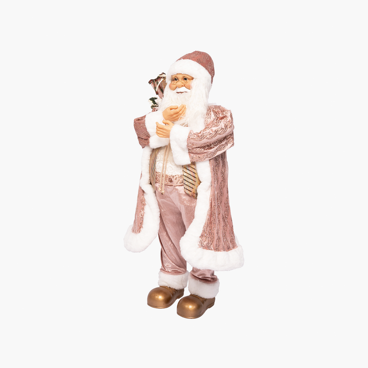 JC Pembe Noel Baba 90cm, zarif tasarımı ve etkileyici boyutuyla yılbaşı dekorasyonlarının göz kamaştıran yıldızı olur. Pudra pembesi kadife kostümü, beyaz kürk detayları ve özenle seçilmiş aksesuarlarıyla hem modern hem de klasik şıklığı bir araya getirir. Büyük boyutu sayesinde otel lobileri, mağaza vitrinleri, etkinlik alanları ve geniş yaşam alanlarında dekoratif bir odak noktası yaratır.