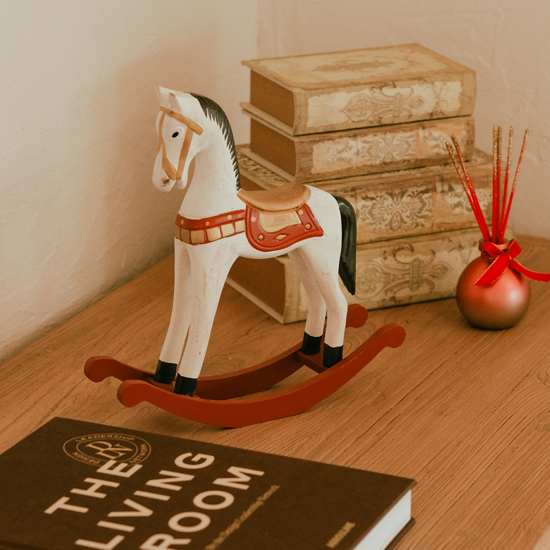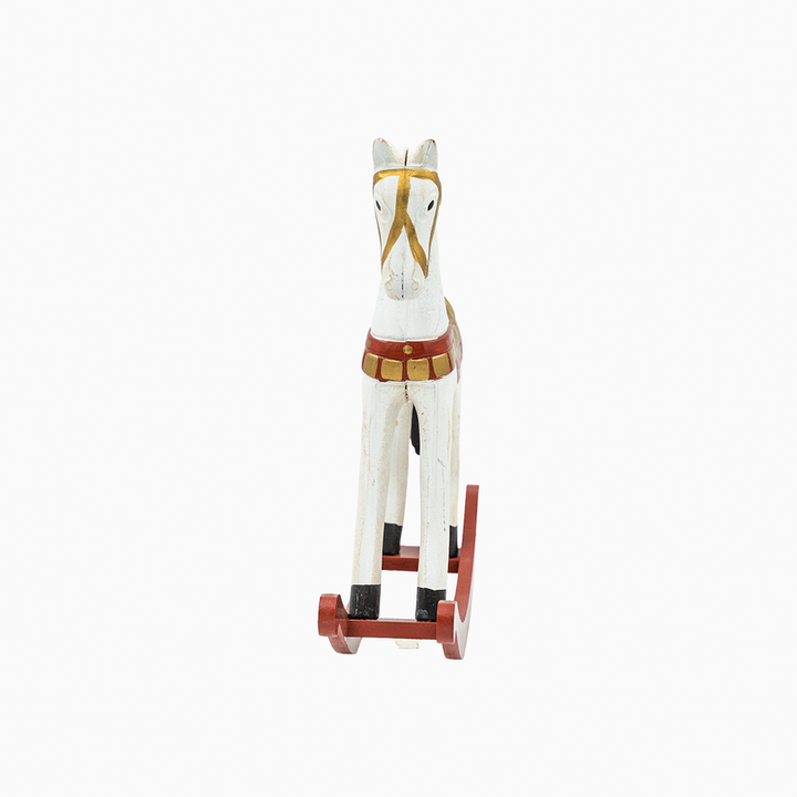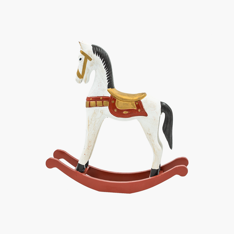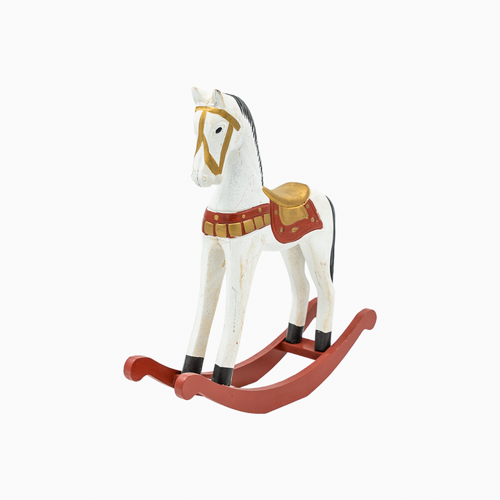 Klasik ahşap işçiliğinin zarafetini yansıtan JC Sallanan At Dekor, nostaljik bir dokunuşla yaşam alanlarınıza sıcaklık katar. Kırmızı ve altın detaylarla süslenmiş beyaz gövdesiyle şık bir görünüm sunan bu özel parça, hem geleneksel hem de modern dekorasyonlarda zarif bir tamamlayıcı olur.