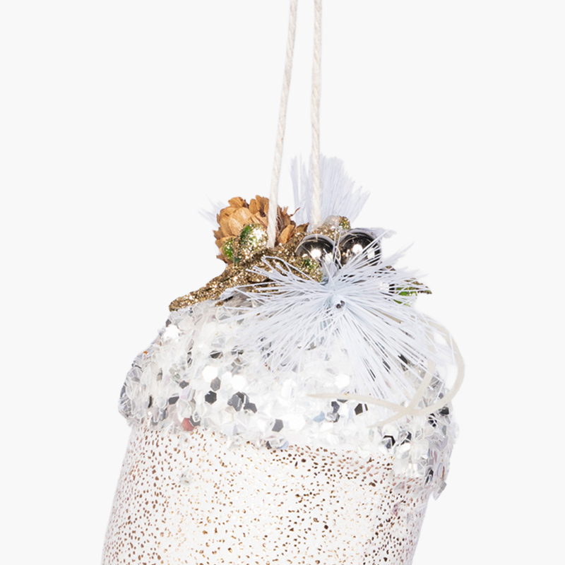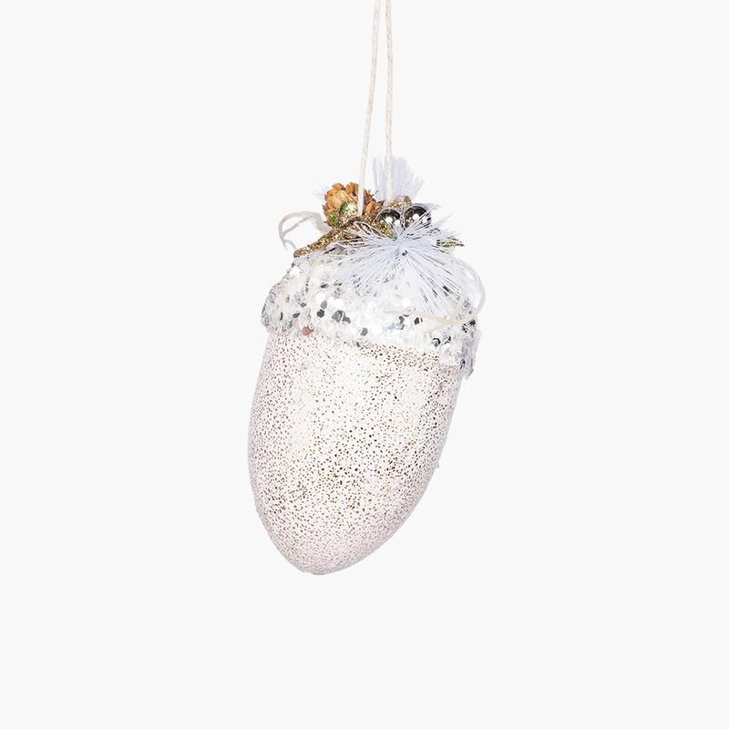 JC Simli Beyaz Palamut Ağaç Süsü 20cm
