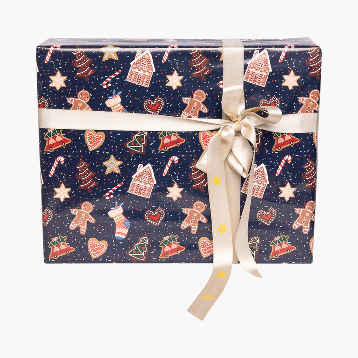 Lezzetli kurabiye desenleriyle süslenmiş JC Yılbaşı Cookie Paketleme Kağıdı, hediyelerinize eğlenceli ve neşeli bir dokunuş katar. Zencefilli kurabiye adamlar, şekerler ve yılbaşı temalı figürlerle hazırlanan tasarımı, hediyelerinizi sanki tatlı bir yılbaşı sofrasının parçasıymış gibi gösterir. Çocuklardan yetişkinlere herkesi gülümsetecek sıcacık bir sunum sağlar.