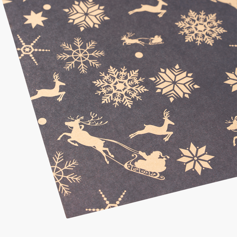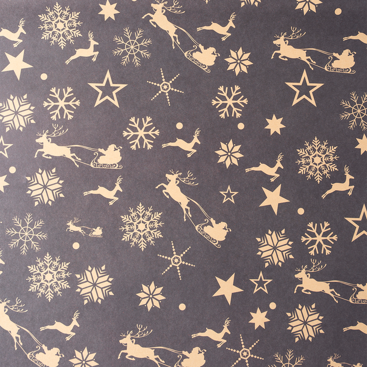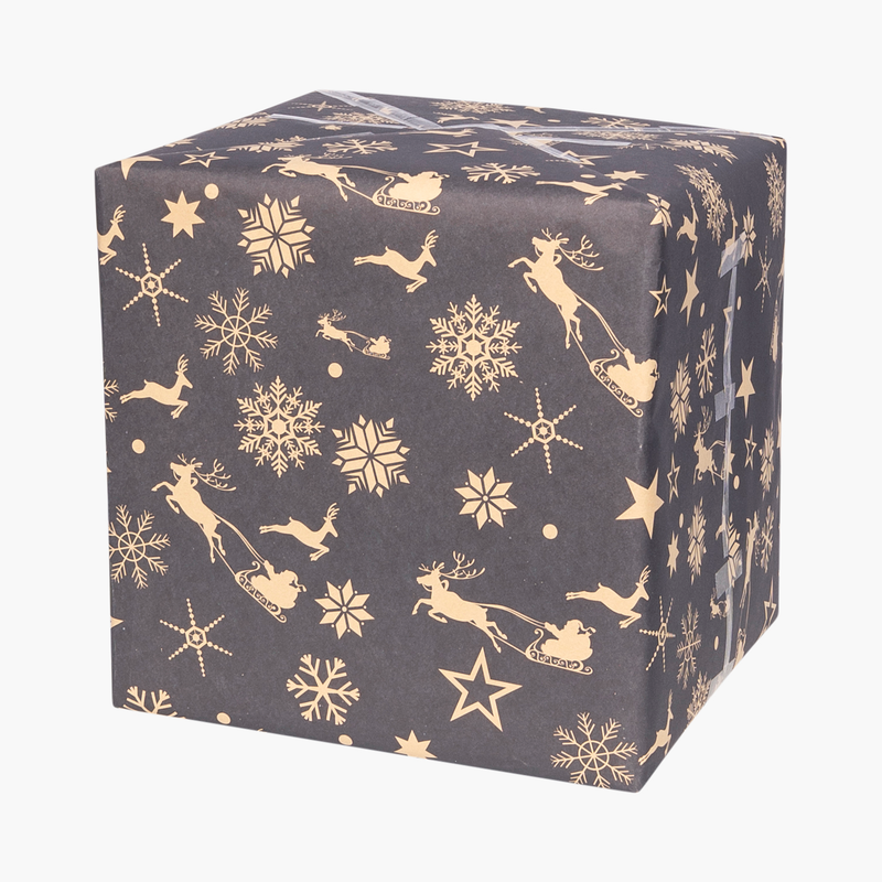 Koyu mavi zemin üzerine altın renkli yılbaşı desenleriyle işlenen JC Yılbaşı Mavi Paketleme Kağıdı, hediyelerinize zarif ve göz alıcı bir şıklık katar. Kar taneleri, geyikler ve yıldız figürleriyle süslenen bu özel tasarım, yılbaşı ruhunu en zarif haliyle yansıtır. Sevdiklerinize vereceğiniz hediyelerde unutulmaz bir sunum için ideal bir seçimdir.