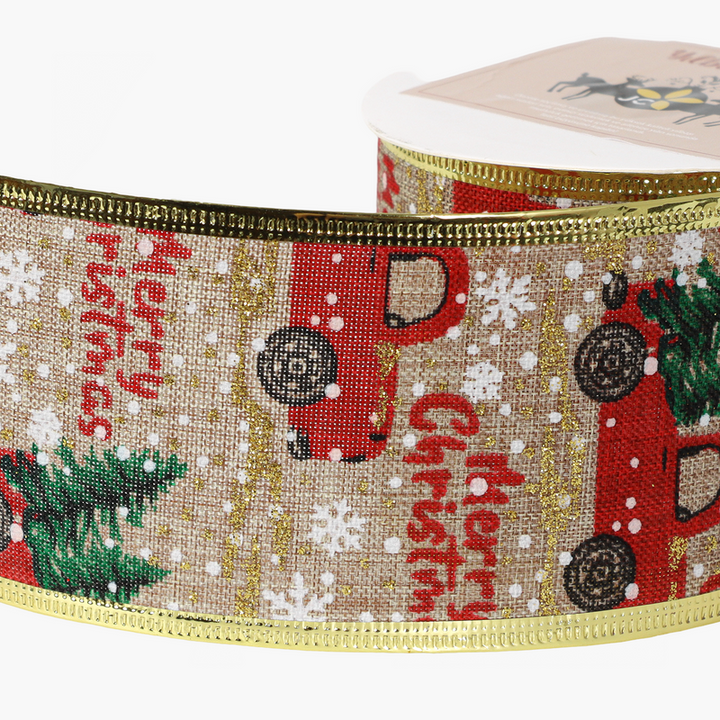 JC Yılbaşı Temalı Kırmızı Kamyon Kurdela 6,3cm x 2,7m