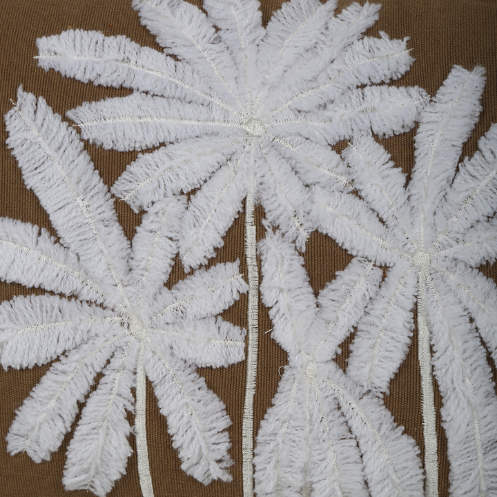 Kahverengi Keten Çoklu Palmiye Nakışlı Dikdörtgen Kırlent