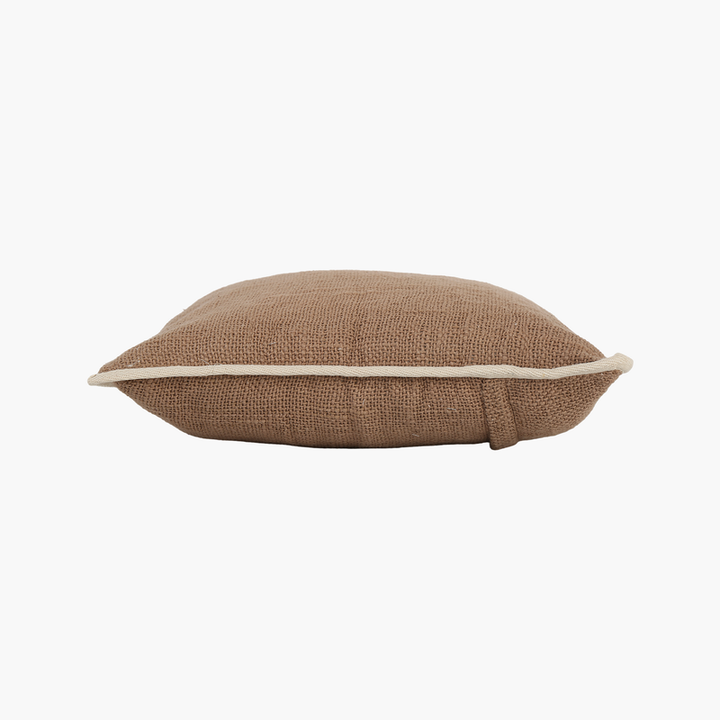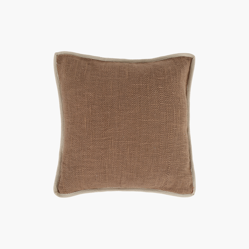 Ürün İsmi: Kahverengi Keten Kare Kırlent - Beyaz Kenarlı