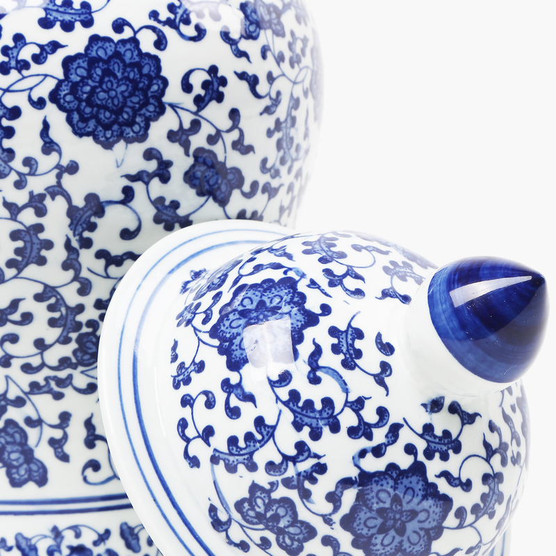 Ürün Metni: Bu zarif kapaklı seramik vazo, geleneksel Çin porselen sanatının inceliklerini modern bir tasarımla birleştiriyor. Mavi çiçek desenleriyle işlenmiş bu vazo, evinizde veya otel ve restoranlarınızda klasik bir şıklık yaratır. El yapımı seramik olması, her bir vazoyu benzersiz kılarak, yaşam alanınıza otantik bir dokunuş katacaktır. İster şık bir dekorasyon objesi olarak, ister yılbaşı süslemelerinde sıcak ve davetkâr bir atmosfer yaratmak için kullanabileceğiniz bu vazo, her açıdan göz alıcıdır.