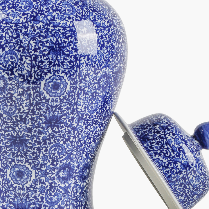 Ürün Metni: Zarif mavi çiçek desenleriyle işlenmiş bu kapaklı seramik vazo, ev dekorasyonunuza şıklık katacak. Geleneksel Çin porselen sanatının zarif detayları, modern bir dokunuşla birleşerek her mekan için kusursuz bir dekorasyon unsuru oluşturuyor. El yapımı olması, her bir vazoyu benzersiz kılar ve otantik bir estetik sunar. Özellikle oturma odalarında, yatak odalarında veya otel ve restoranlarda şık bir atmosfer yaratmak için mükemmel bir tercihtir. Yılbaşı dekorasyonları için de oldukça uygundur, soğuk kış günlerinde sıcak bir ortam yaratmanıza yardımcı olur.