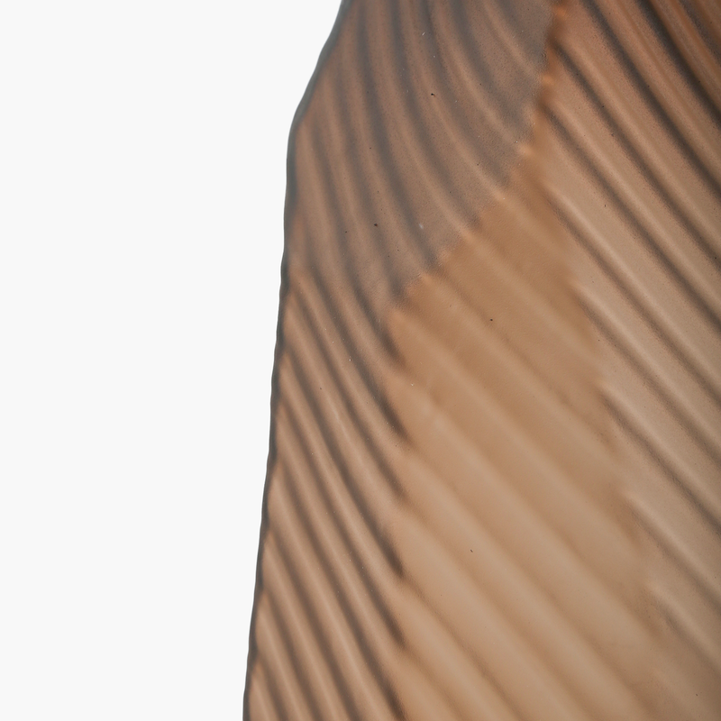 Ürün Metni: Modern ve şık bir tasarıma sahip olan bu kahverengi cam vazo, güçlü köşe hatları ve zarif kıvrımlarıyla dikkat çeker. Üzerindeki spiral desen, her açıdan farklı bir görsel efekt yaratırken, camın pürüzsüz yüzeyi de estetik bir dokunuş sağlar. Yüksekliği ve genişliğiyle, odak noktasında yer alacak kadar etkileyicidir. Hem minimal hem de dikkat çekici bir dekorasyon unsuru arayanlar için mükemmel bir seçenek.