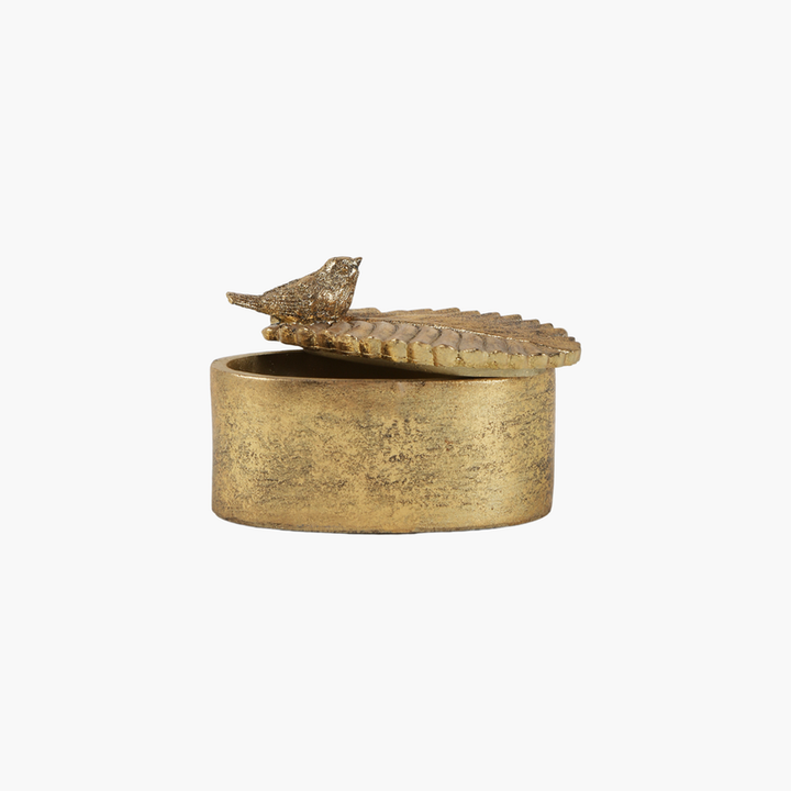 Ürün Metni: Zarif bir tasarıma sahip olan bu kutu, doğal dokusu ve altın rengiyle her türlü dekorasyona şıklık katıyor. Üst kısmında bulunan kuş figürü, nostaljik bir hava yaratırken, kutunun fonksiyonel yapısı ise küçük eşyalarınızı saklamak için ideal bir çözüm sunuyor. Ev dekorasyonunda veya ofis alanlarında kullanılabilecek bu obje, aynı zamanda hoş bir hediye seçeneği de oluşturuyor.