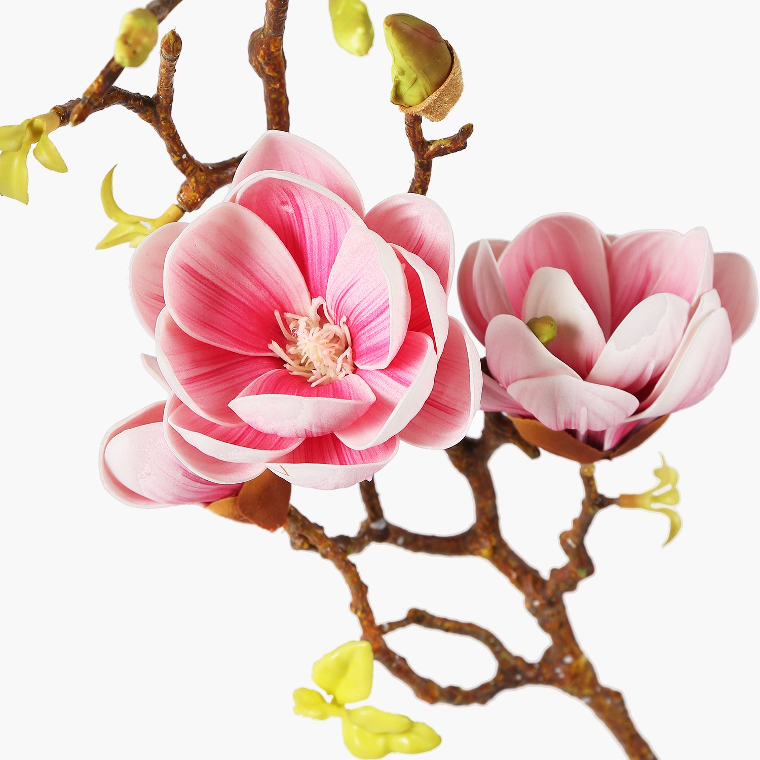Pembe tonlarının canlılığını zarif bir şekilde yansıtan 78cm uzunluğundaki Magnolia Dal Pembe, dekorasyonunuzda hem şık hem de doğal bir dokunuş yaratır. Özenle tasarlanan bu yapay çiçek, gerçekçi görünümüyle yaşam alanlarınızı canlandırır ve dekorasyona sıcak bir hava katar.
