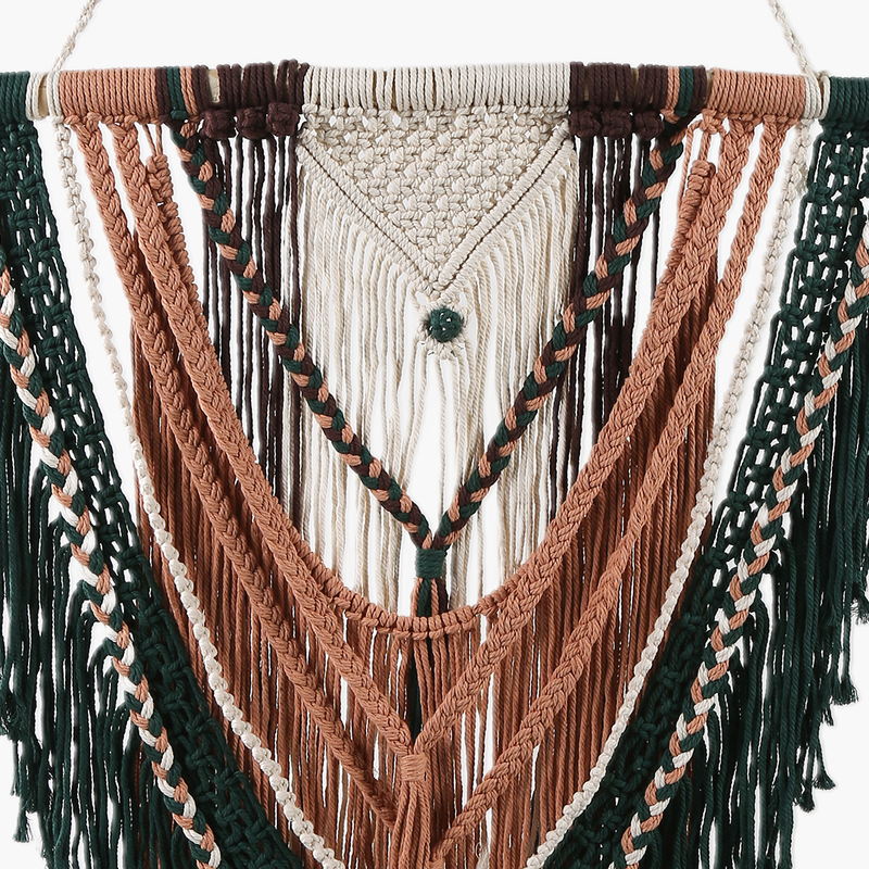 Evinizde doğal bir şıklık yaratmak isteyenler için 95x95 cm boyutlarındaki bu makrome duvar dekoru, el işçiliğiyle hazırlanmış zarif detaylarıyla dikkat çekiyor. Yeşil, kahverengi, krem ve turuncu tonlarının ahenkle birleştiği tasarımı, mekanlarınıza sıcak ve davetkar bir atmosfer katar.