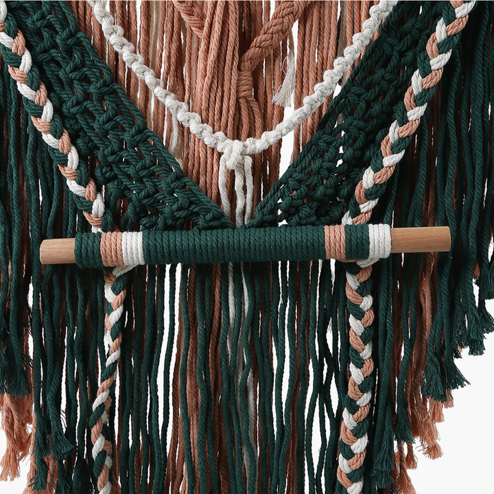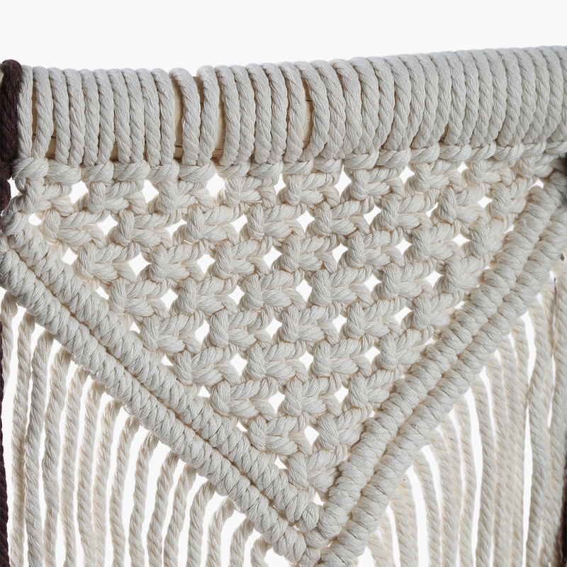 Bu makrome dekoru, yatak odanızın duvarına veya oturma odanızın ana dekorasyon parçası olarak asabilirsiniz. Ahşap mobilyalar ve pastel tonlarla birleştirerek doğal bir görünüm elde edebilirsiniz. Mekanınıza sanatsal ve özgün bir dokunuş kazandırmak için mükemmel bir seçim!