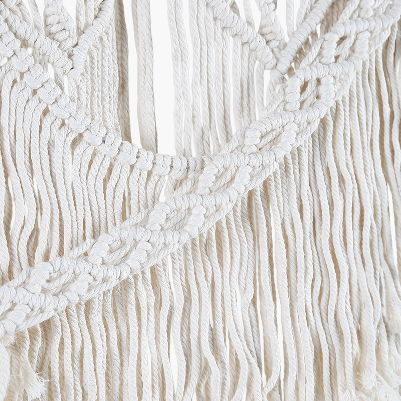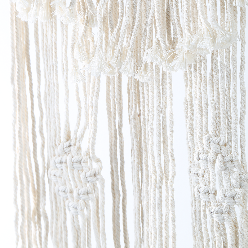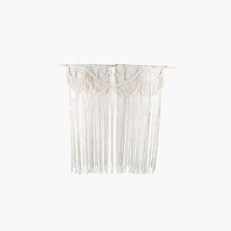 Bu büyük makrome duvar dekoru, açık tonlu duvarlara asıldığında ferah bir görünüm sağlar. Minimalist mobilyalar ve doğal ahşap aksesuarlarla birlikte kullanıldığında, mekanınızda sıcak ve davetkar bir atmosfer yaratabilirsiniz. Özel etkinliklerde ya da düğün dekorasyonu olarak da kullanılabilir.