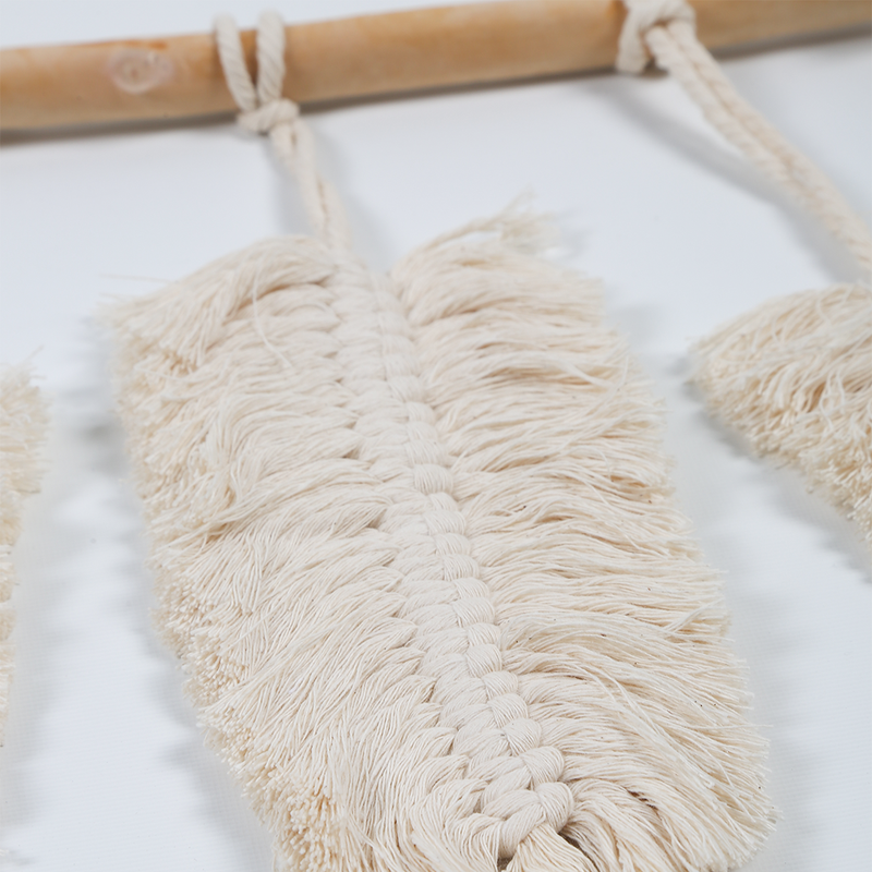Doğal ve minimalist bir estetik arayanlar için tasarlanmış 50x42 cm krem makrome duvar dekoru, yaşam alanlarınıza bohem bir sıcaklık ve şıklık getiriyor. El yapımı tüy detayları ve doğal ahşap çerçevesi, ürünün hem doğal hem de modern bir hava sunmasını sağlıyor. Her bir detayı özenle işlenmiş bu dekor, evinizin duvarlarında zarif bir dokunuş bırakacak.