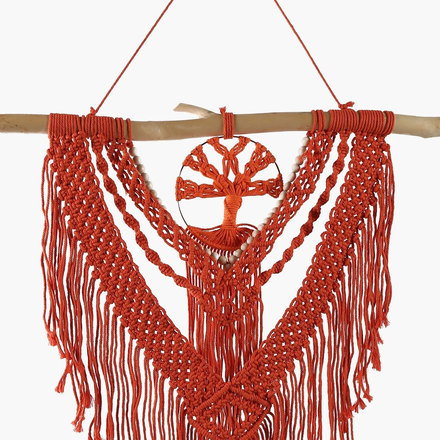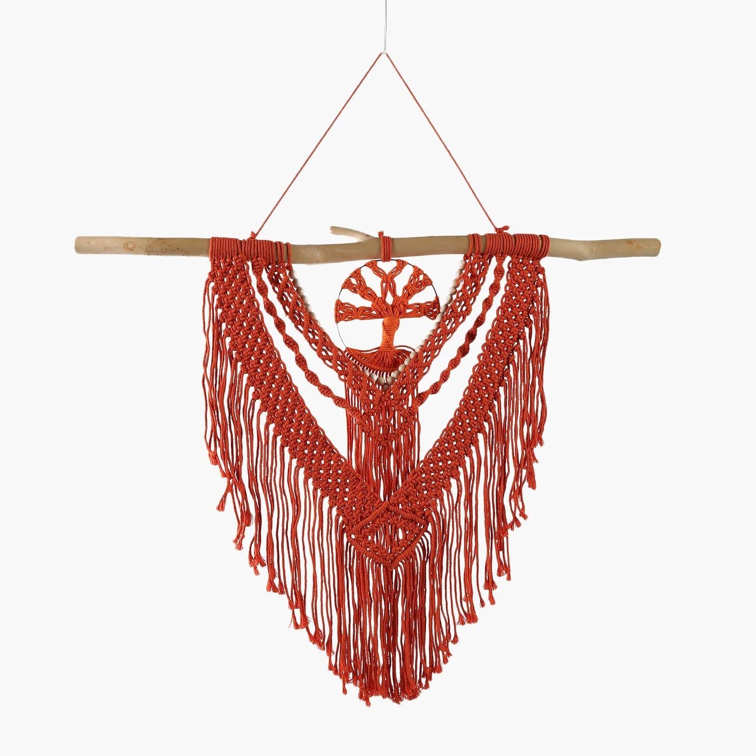 Bu el yapımı makrome duvar dekoru, evinize canlı bir renk ve doğal bir güzellik katıyor. Parlak turuncu rengi ve yaşam ağacı detayıyla dikkat çeken bu dekorasyon, salonunuzda, yatak odanızda, antrede, terasınızda ya da balkonda kullanmak için mükemmel bir tercih. Aynı zamanda gastronomi alanlarında şık bir dekor olarak da öne çıkar. Boho tarzına ve sıcak bir atmosfere katkıda bulunur.
