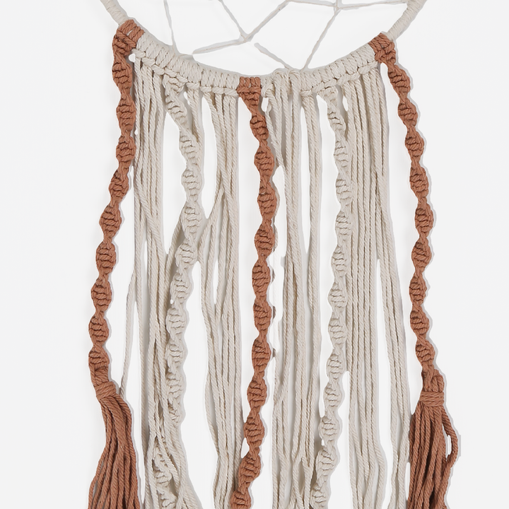 Ev dekorasyonunuza zarafet ve bohem bir dokunuş katmak için tasarlanan bu makrome yuvarlak duvar dekoru, iki renkli doğal tasarımıyla öne çıkar. El işçiliğiyle hazırlanan bu ürün, evinizin herhangi bir köşesine sıcaklık ve estetik bir görünüm kazandırır.