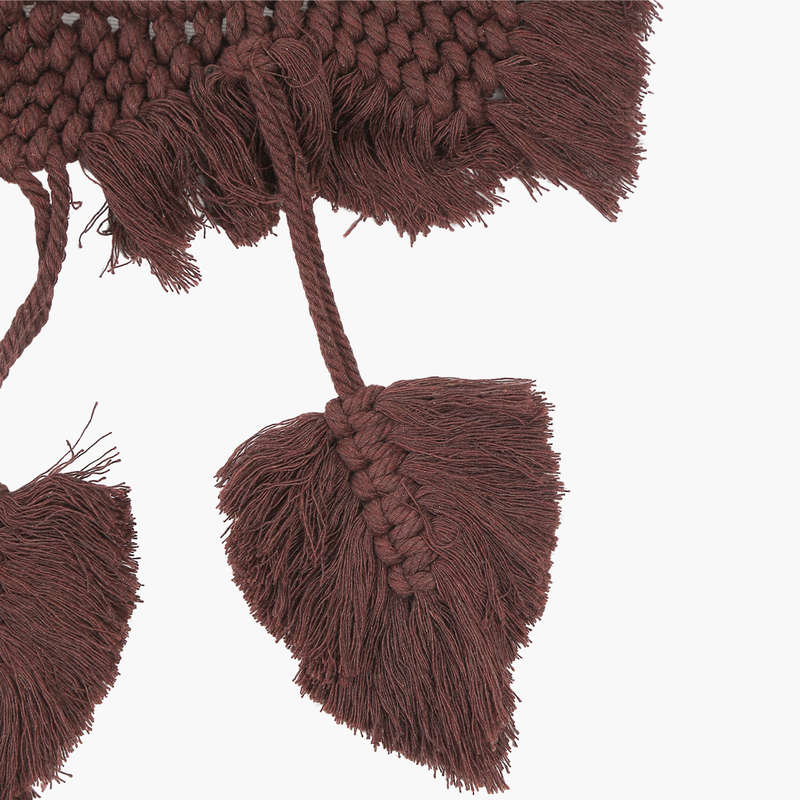 Dekorasyon Önerisi: Bu koyu gri yuvarlak makrome duvar dekorunu, beyaz tonlu bir duvarda sergileyerek kontrast yaratabilir veya diğer doğal ahşap aksesuarlarla kombinleyerek şık bir bütünlük sağlayabilirsiniz. Evinize sıcak bir atmosfer kazandırırken, doğal dokusuyla huzur veren bir ortam yaratır.