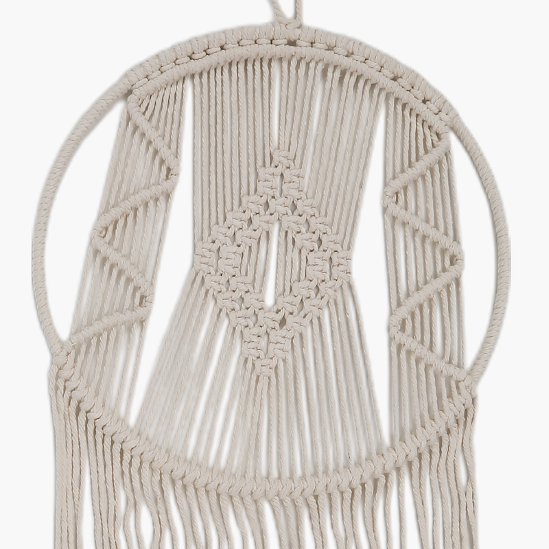 İpucu: Bu dekoratif makrome ürün, Jasmin Concepts'in ahşap çerçeveli aynaları ve rattan mobilyalarıyla mükemmel bir uyum yakalar. Sade bir arka plana asarak zarif bir odak noktası oluşturabilirsiniz.